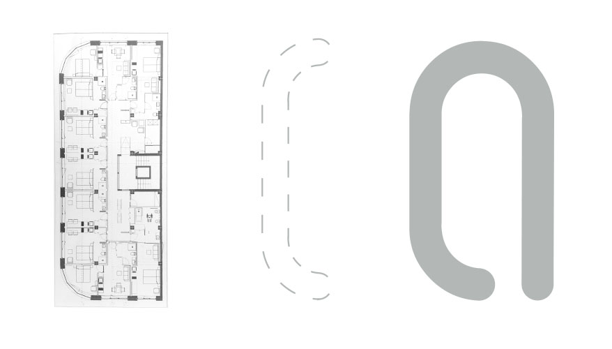 O uso de formas simples e arredondadas confere uma identidade moderna e atual, bem como o uso do cinza claro, subtil com um toque de elegância.